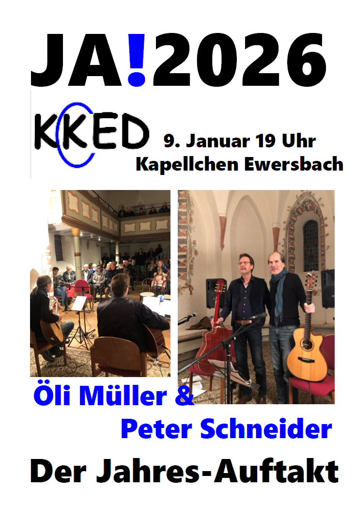 „JA!2026“ steigt am 9. Januar um 19 Uhr in der Johanneskapelle in Ewersbach (Hauptstraße 47). Der Eintritt ist frei. Es spielen die „Men in Blue“ Peter Schneider und Michael „Öli“ Müller.